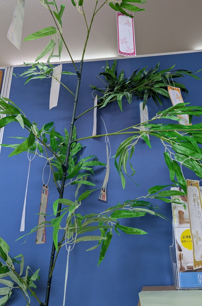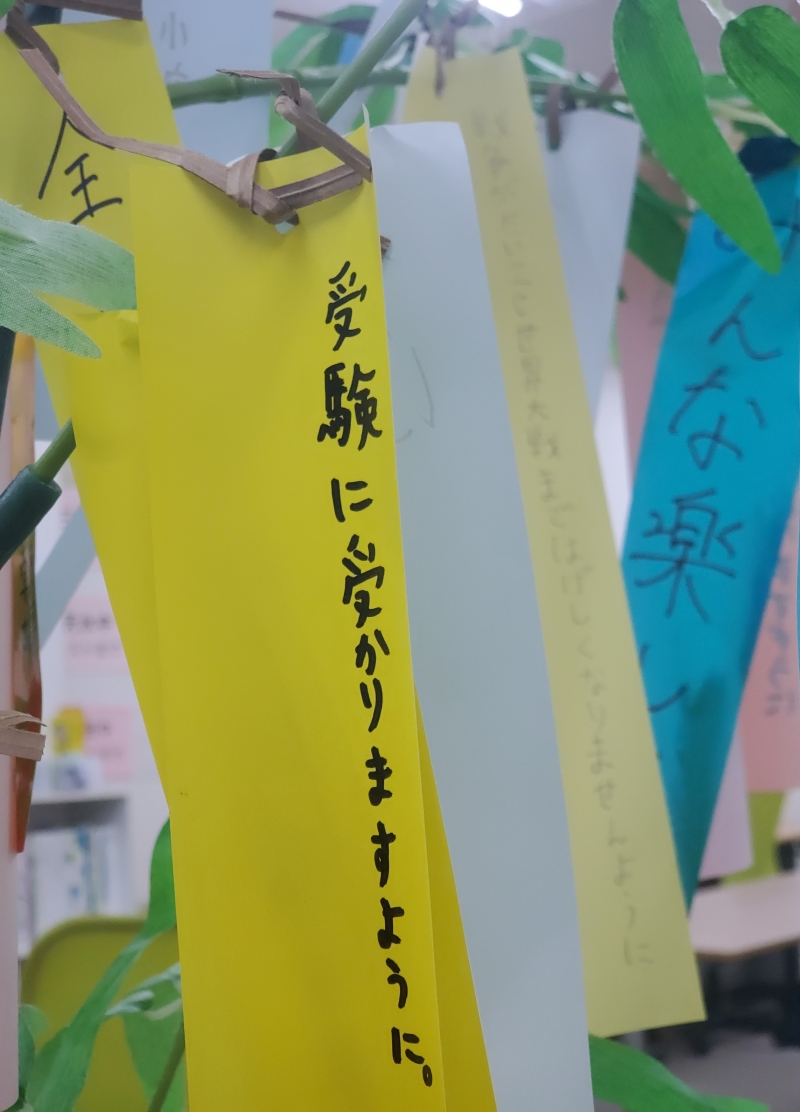 教室には生徒さんのたくさんの短冊にいろんな願いが書いてあります。
