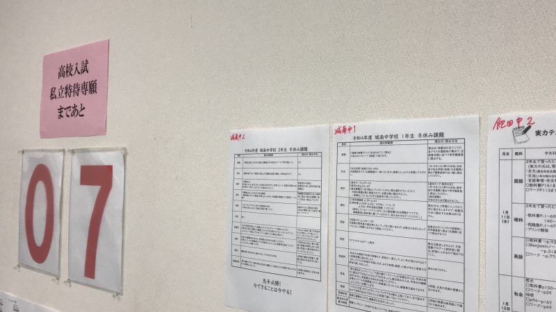 2023/01/111/18(水)の私立高校特待専願入試まであと1週間!